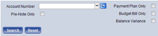 This will display the search functions, enabling the user to select certain criteria; at the very minimum, a search by Balance Variance and a review of the accounts with variances should be completed before drafts are processed.