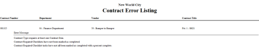 The Contract Listing report allows an organization to view all the detail information that was entered during the Contract Preperation process.