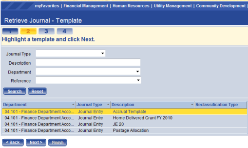 The next option in the drop down is the option to access template journals. Once the template option has been selected, click Next.
