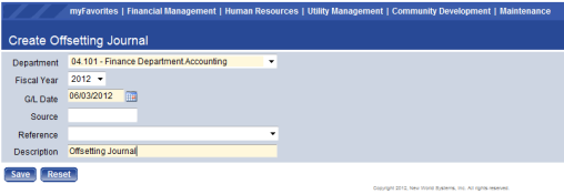 Create Offsetting Journal |