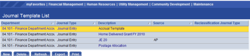 Export – Journals may be exported to other systems. Clicking this button will allow the user to begin the process of exporting the template journal.