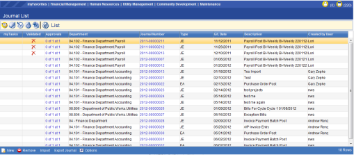In New World ERP all journals, both system created and user created, are processed through the Journals module within the Financial Management application.