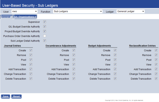 All three elements of New World ERP security (Permissions, User-Based Security and Process Manager) apply to Journal Processing.