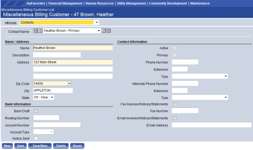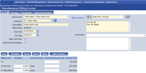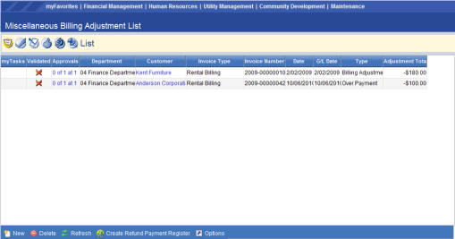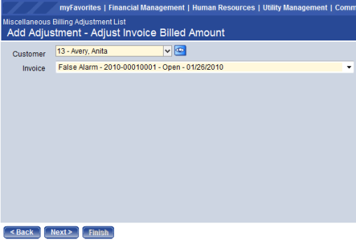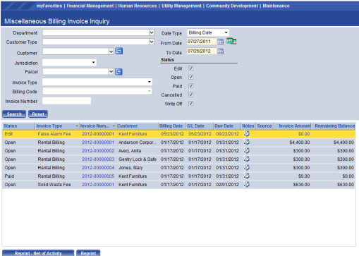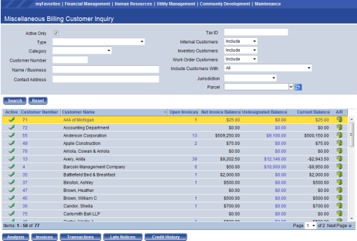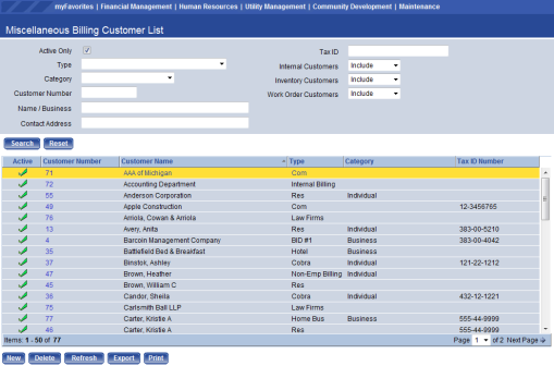 Financial Management > Inquiries > Miscellaneous Billing > Customers