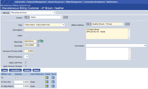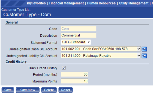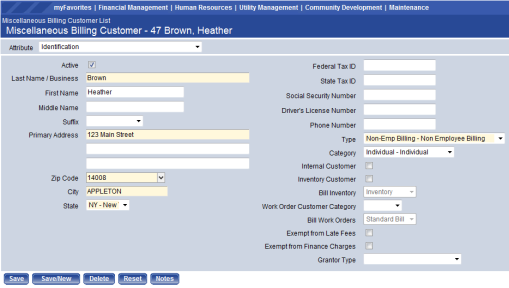 Maintenance > Financial Management > Miscellaneous Billing > Customer Types