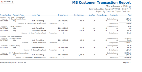 Miscellaneous Billing Customer Transaction Report