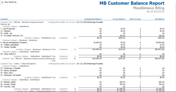 Miscellaneous Billing Customer Balance Report