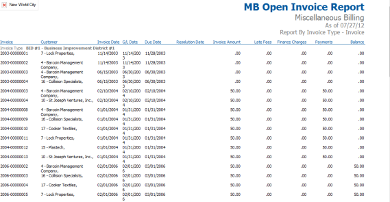 The Miscellaneous Billing Open Invoice Report will display all of the Open Invoice per customer. This is one of the most commonly used reports for Miscellaneous Billing.