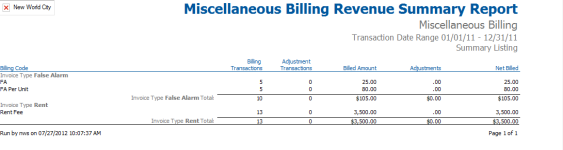 Miscellaneous Billing Revenue Summary Report