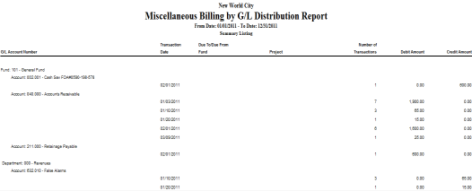 Miscellaneous Billing G/L Distribution Report
