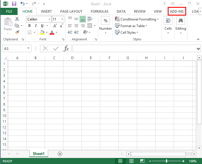 In Excel, click Add-Ins on the menu bar.
