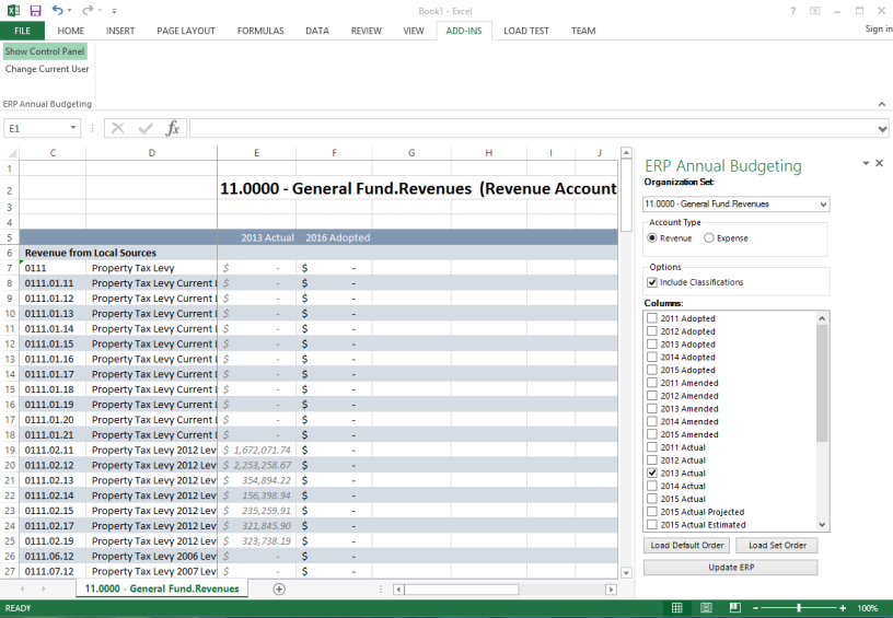 Annual Budget Processing Excel Add-In