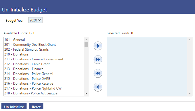 - In Budget Year, select the year in which to un-initialize a fund in the budget.