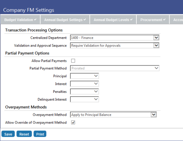 In the Overpayment Method drop-down, you may select Apply to Undesignated Balance or Apply to Principal Balance.