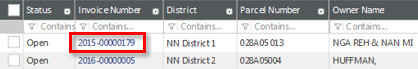 - District, Jurisdiction, Parcel and Invoice Number are all optional fields that may be used to assist you in narrowing your search.