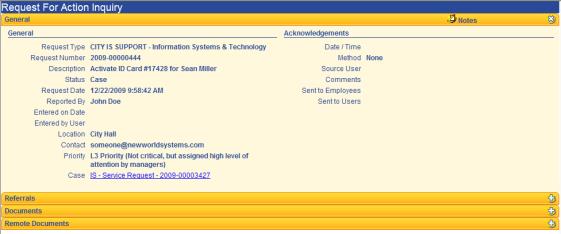 The Request for Action Inquiry page allows you to search for a specific request for action (RFA) in the New World ERP system.