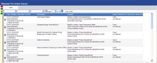1. Go to Financial Management > Work Orders > Request For Action Inquiry.