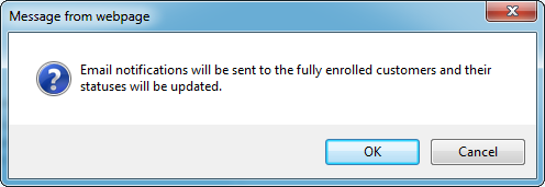 - If, however, enrollment confirmation is required, i.e., the Require Enrollment Confirmation check box in Company FM Settings is selected, the customer’s enrollment status will be changed to Partially Enrolled and a “Welcome/Confirmation” email message will be sent to their specified email account requesting confirmation for enrollment.
