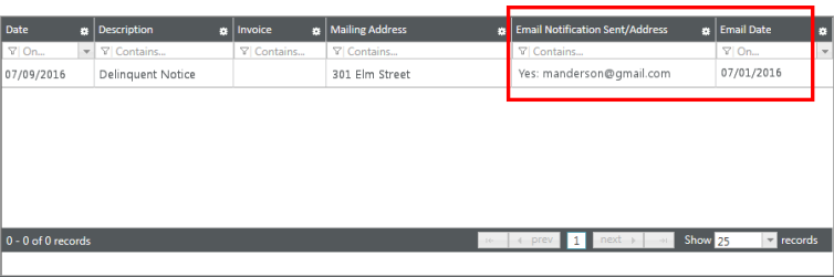 The Email Date column displays the date on which the email notification was sent to the customer’s primary contact. If an email message was not sent, this field will be blank.