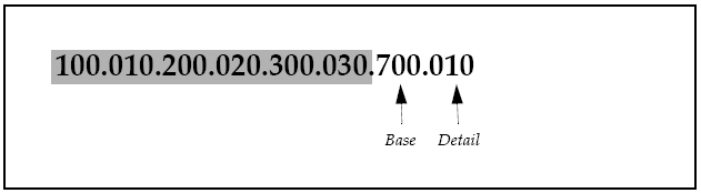 A general ledger account number must always have an account element. You can specify whether the account elements include only the base component or the base and detail components. If the account element includes the detail component, you can specify whether or not base and detail information are rolled up into one long number for reporting purposes.