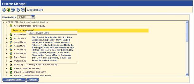 - Click the Approval Users button. The Approval Users pop-up page displays.