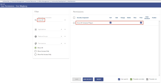 For the option to appear on the menu, each user needs permission to the Illinois 941 Schedule P Report security component: