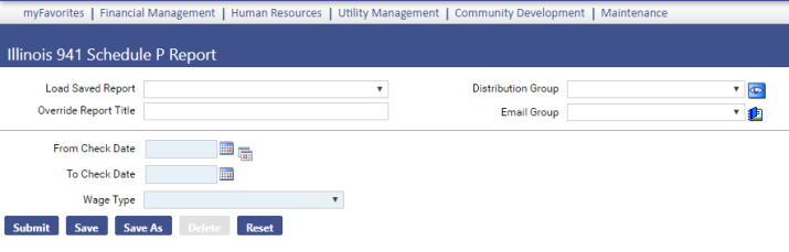Use this page to generate the Illinois 941 Schedule P Report and transmittal file containing social security numbers, wage and withholding data for employees who have been hired or rehired within the check date range of your choice.
