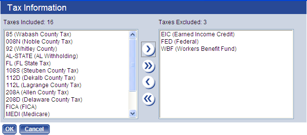 Move the appropriate taxes from the Taxes Included box to the Taxes Excluded box, and click OK.