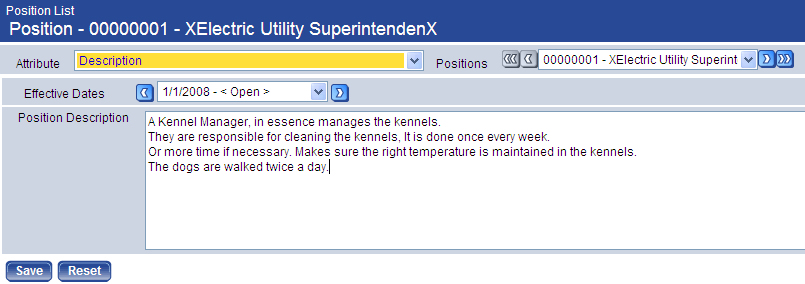 Position to manage this one. This field is enabled if the Manager box is checked. The list of available positions is based on those that have the Manager box checked. Through the setup of managing positions, the system creates an organizational chart of the positions. It does not actually create a report of the organizational chart, but you may view this information. |