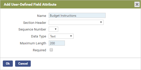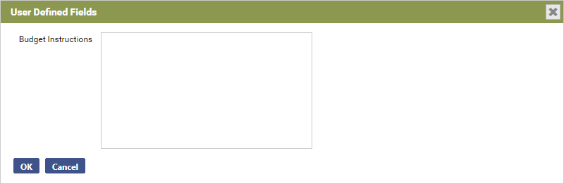 Tip: If the field is too small to accommodate all of your instructions, consider increasing the field’s Maximum Length. This is done via the Add User-Defined Field Attribute window as described in the Create a UDF for Budget Instructions section above.