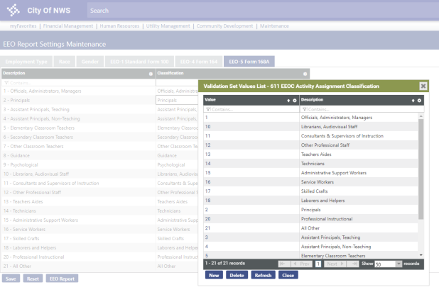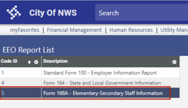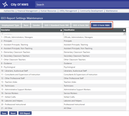 EEO-5 Form 168A tab has been added to the EEO Report Settings Maintenance page.