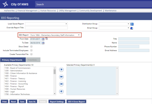 EEO-5 Form 168A report for elementary and secondary schools has been added to the EEO report collection.