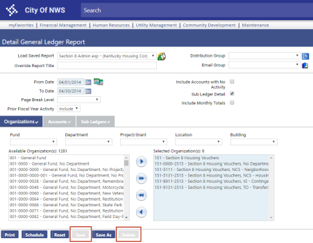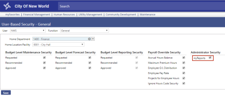 Users who have the myReports administrator security right selected can now modify and delete public shared reports. When the security right is not selected, the Save and Delete buttons are disabled on saved reports. |