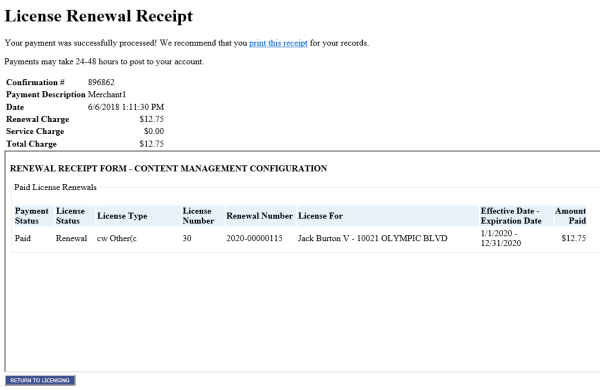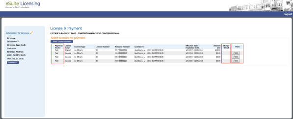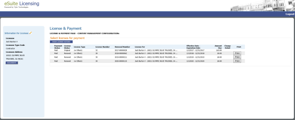 The user is able to view the licensee's full address information on a tooltip for the Select Licenses for Payment grid. |