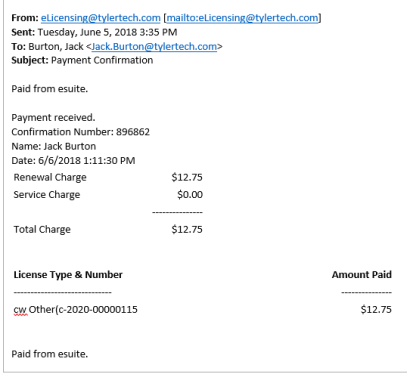 More information, including payment amount, license type and license number, has been added to the License Payment Confirmation email. |