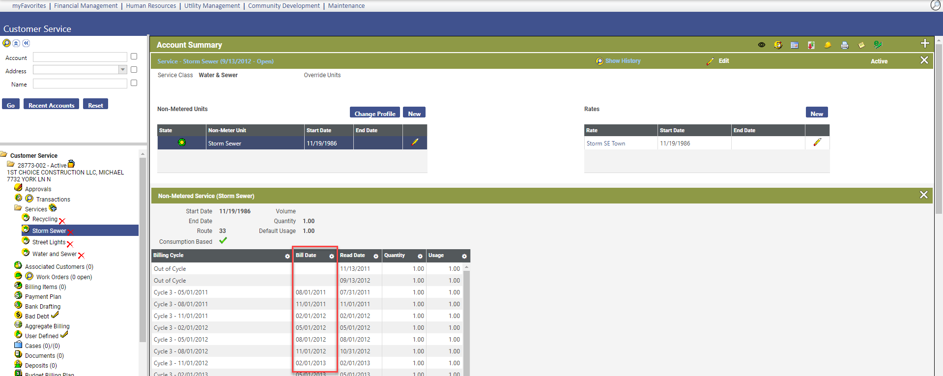 | Utility Management | Customer Service | A Bill Date column has been added to the non-metered history grid. (Utility Management > Customer Service > Account > Services > Service) | 7221804 | Enhancement | NWERP-68292 |