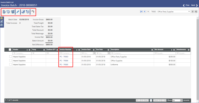 Users can then open the invoices via the Invoice Batch entry page and make any necessary changes.