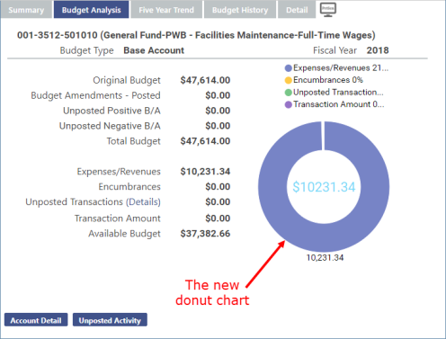 - The manner in which information and graphical charts are presented in the Budget Analysis tab has been updated with a “cleaner,” more modern look. See Budget Analysis tab.