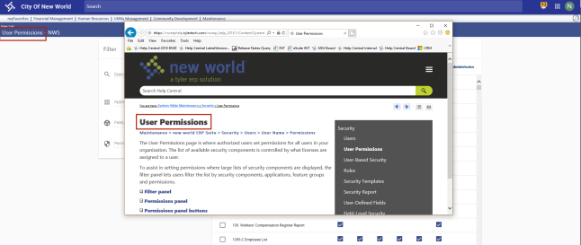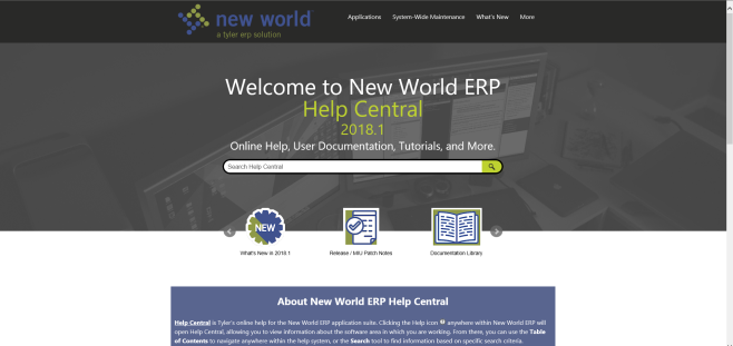 Once there, you have access to any information housed in New World ERP Help Central by using the