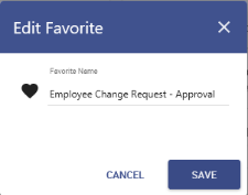 Edit Favorite dialog opens. Type the new name and click SAVE.