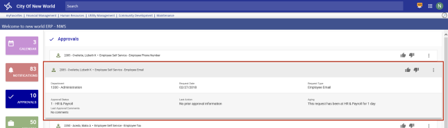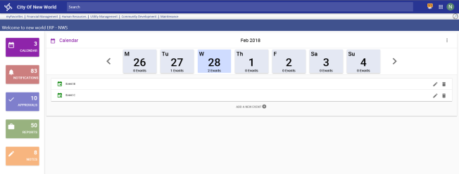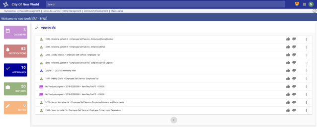 The New World ERP home page has been updated with a more modern, intuitive layout that makes it easy to find, review and act on the information most important to you: