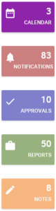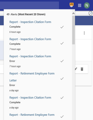 The Alerts icon alerts you to the latest items requiring your approval and reports that have completed and are available in myReports. A running count of the items overlays the icon