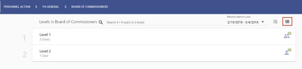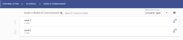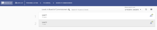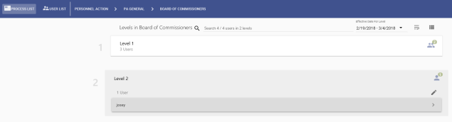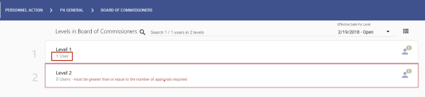 on the far-right of each card shows how many users are required to approve at that level. -