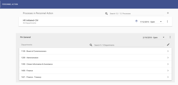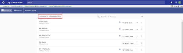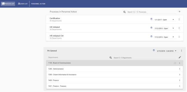list of all processes that have been set up for a process type, click the appropriate card. Processes also are listed alphabetically on individual cards. -