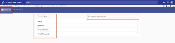 Every page of the Approval Manager contains a search field. Use this field to find the process type you want.