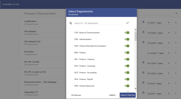 Select Departments dialog opens. -
