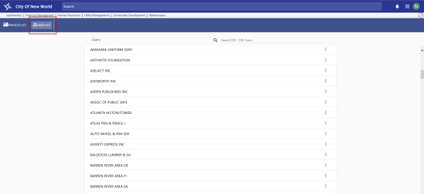 In addition to the PROCESS LIST, you have the option to work from the USER LIST.