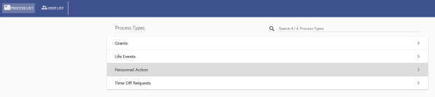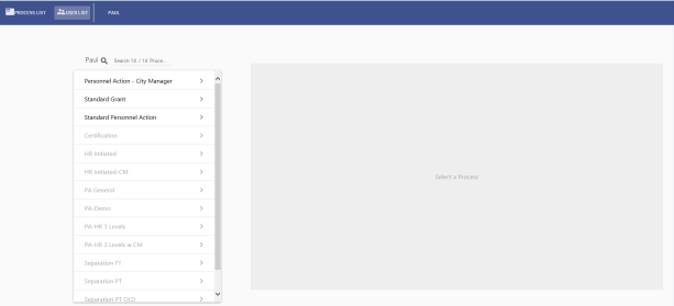 PROCESS LIST. All the available approval process types are listed alphabetically on individual cards. -