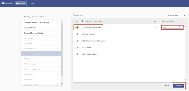 Select a Level field appears on the right. Select the user's approval level from the drop-down. - Click the SAVE CHANGES button on the bottom-right.