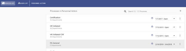 All data from the current process is copied to the new process, and an end date of the day before the new effective date is applied to the current process. You may edit the data for the